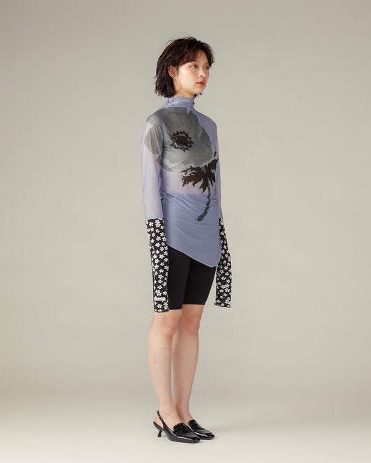 Switched Sleeves Sheer Tops / Blue