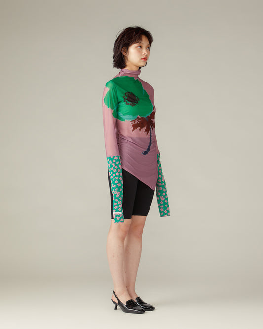 Switched Sleeves Sheer Tops / Pink